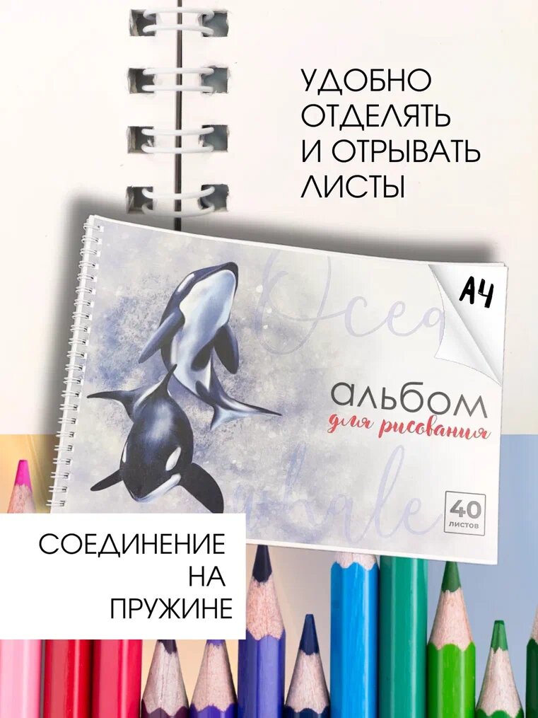 Альбом для рисования А4 AXLER, 40 отрывных листов на спирали (пружине/гребне), набор 2 шт., для творчества и скетчинга, для детей и взрослых, 110 г/м2 информация: