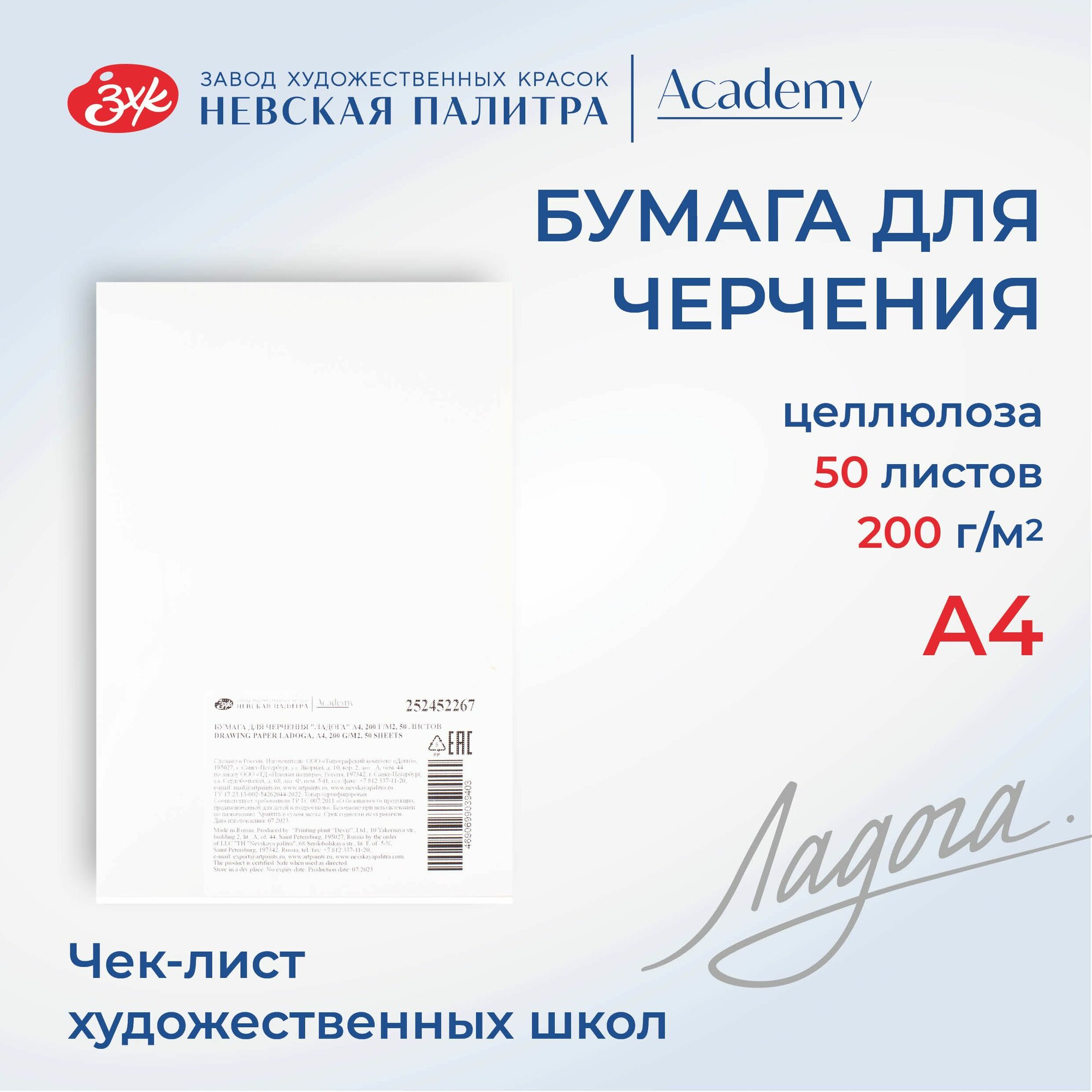 Бумага для черчения Невская палитра Ладога, А4, 200 г/м2, 50 листов информация: