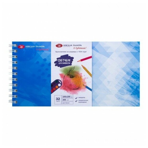 10 цен на Я-Художник! / Скетчбук (для акварели), 200 г/м2, 10х19 см, 32 л, ЗХК Невская палитра