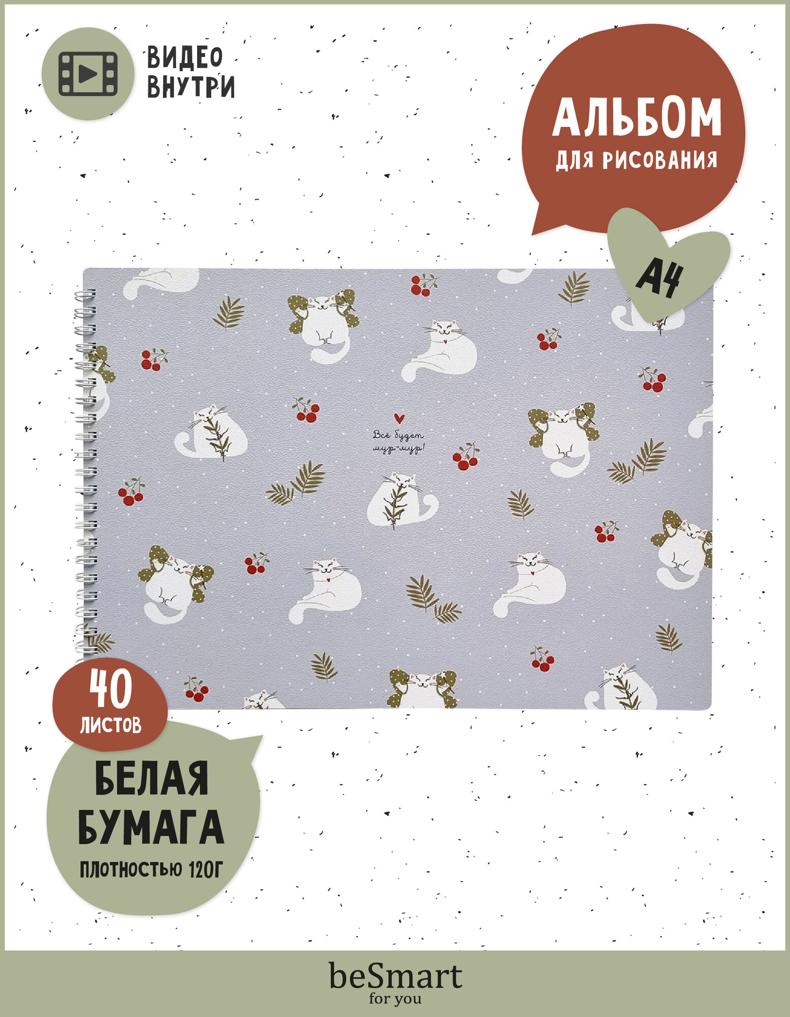 Альбом для рисования beSmart "Mur-Mur" на спирали, А4 на 40 листов плотностью 120 г/м2, мягкая обложка информация: