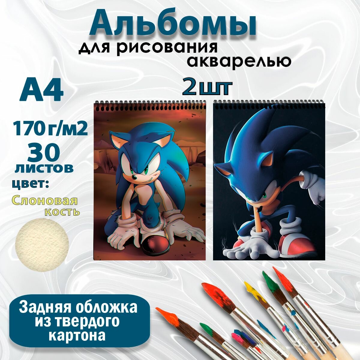 10 цен на Альбом для рисования, для акварели А4 на жесткой подложке Соник, 30 листов цвета слоновая кость. Набор альбомов -2шт