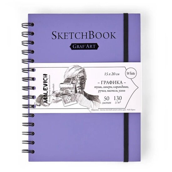 Скетчбук для графики Малевичъ GrafArt white А5, 130 г/м, 15x20 см, 50 листов 355 ₽
