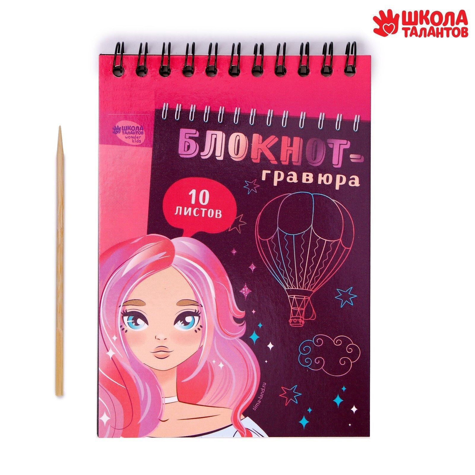 10 цен на Гравюра блокнот детский Beautiful girl, 10 листов, штихель, для девочки, цвет розовый/фиолетовый, Школа талантов