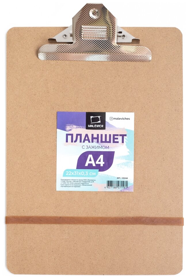 Планшет с зажимом Малевичъ А4 (22х31 см), толщина 3 мм информация: