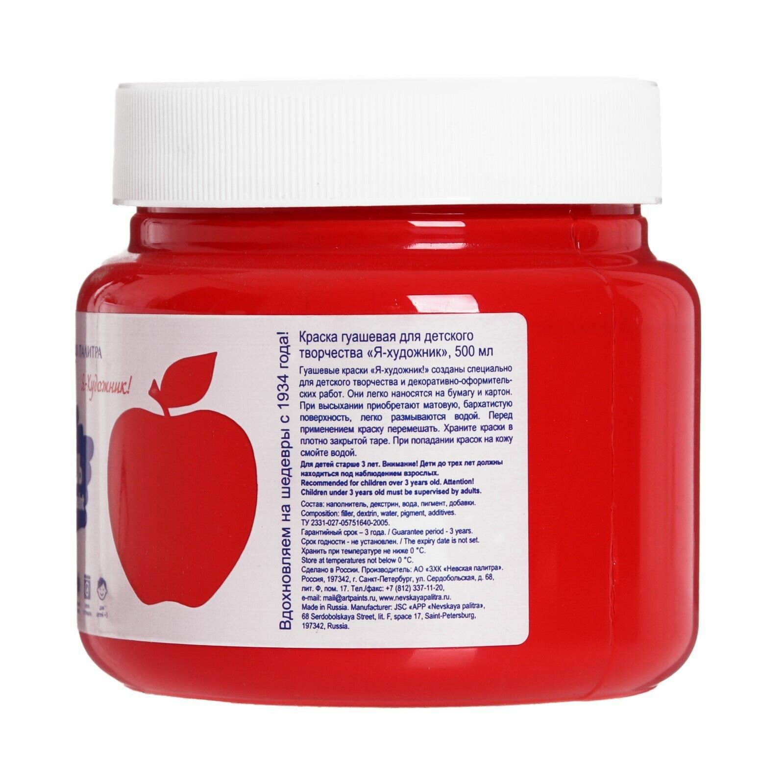 Гуашь в банке Красная 500мл., Я-Художник, артикул 23024331