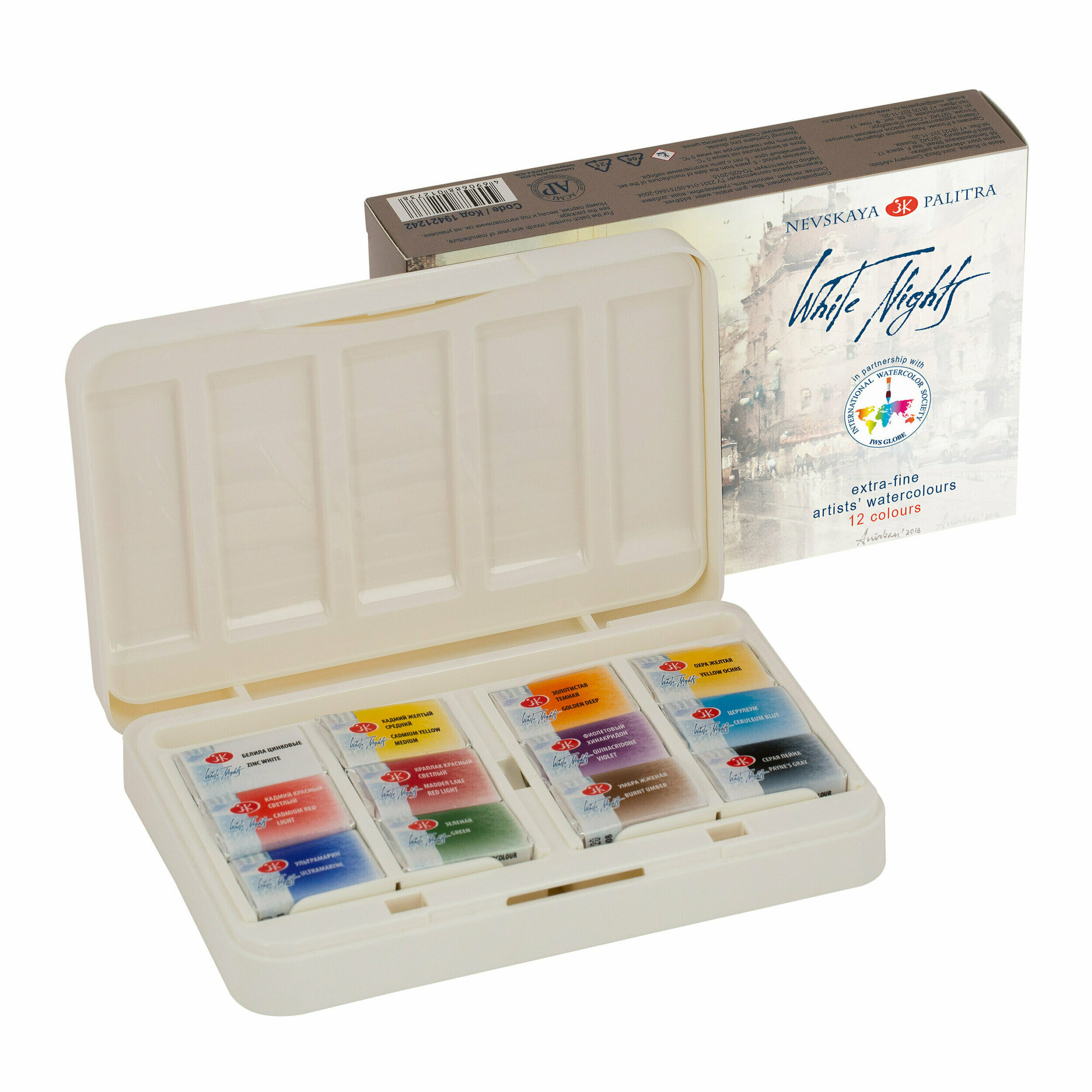 Белые Ночи IWS / Акварельные художественные краски, 12 цветов в кюветах, ЗХК Невская палитра информация: