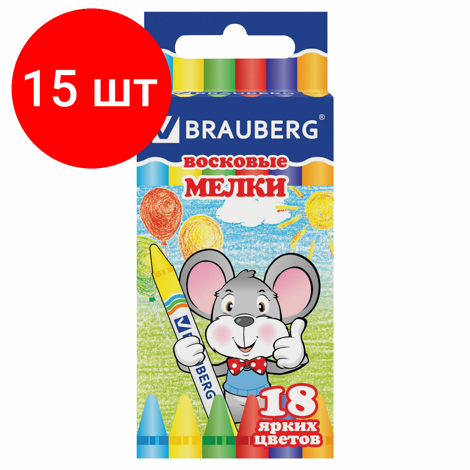 Комплект 15 шт, Восковые карандаши BRAUBERG/пифагор, 18 цветов, 222963 информация: