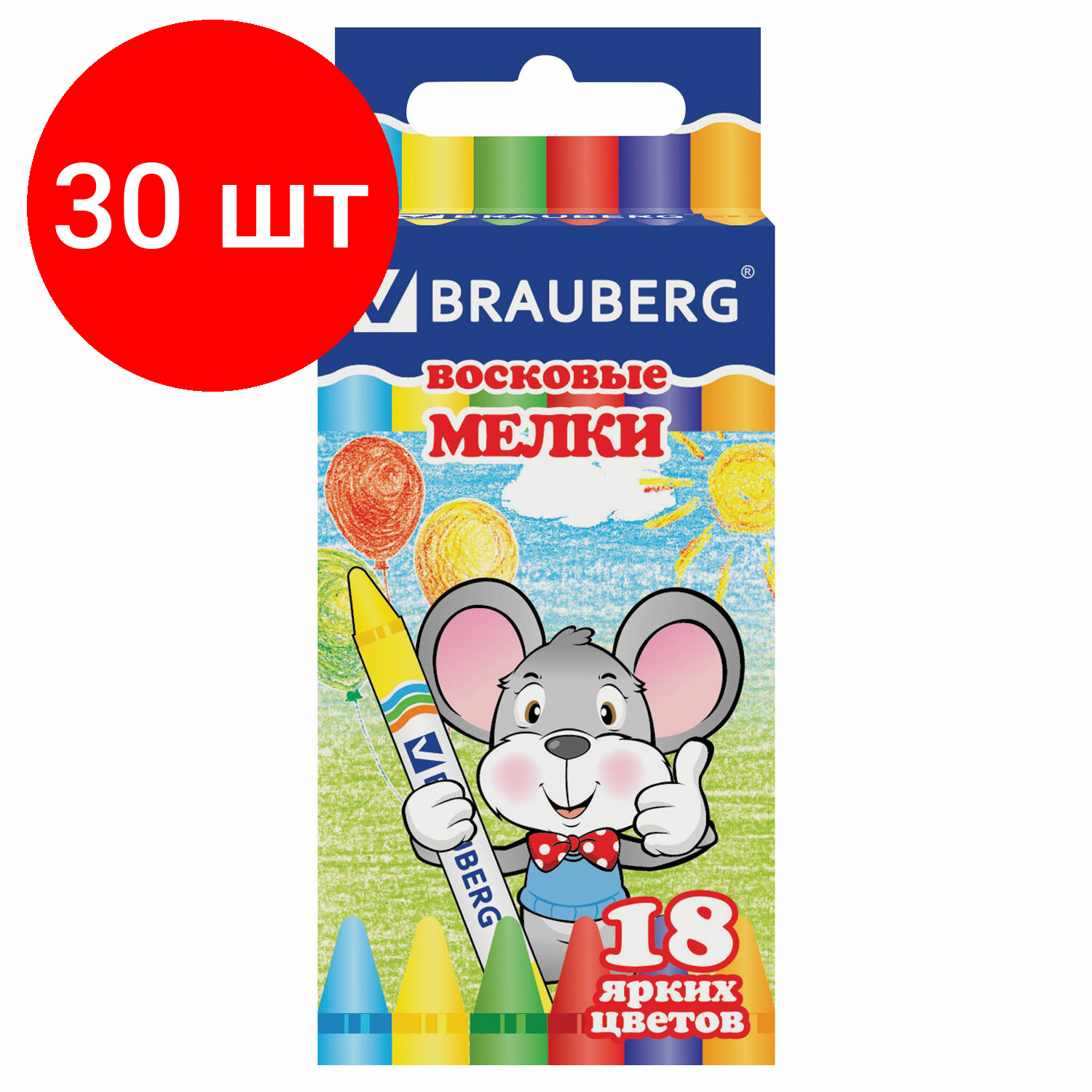 10 цен на Комплект 30 шт, Восковые карандаши BRAUBERG/пифагор, 18 цветов, 222963