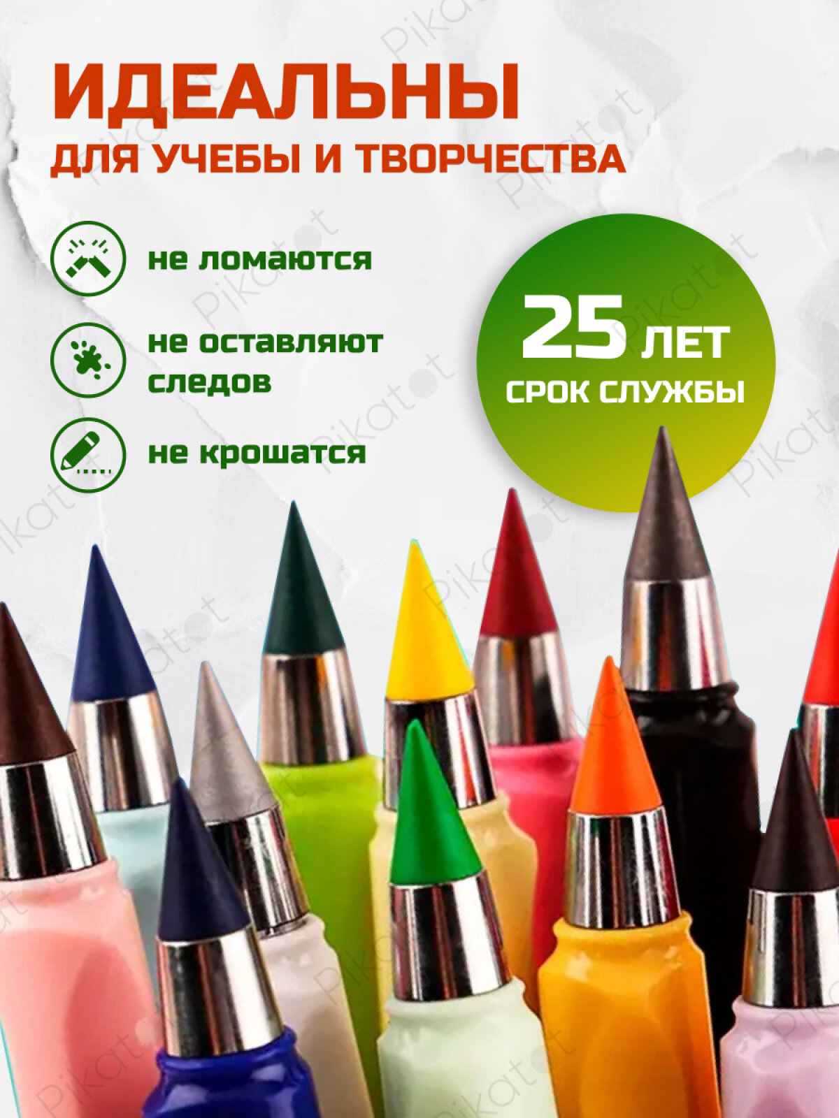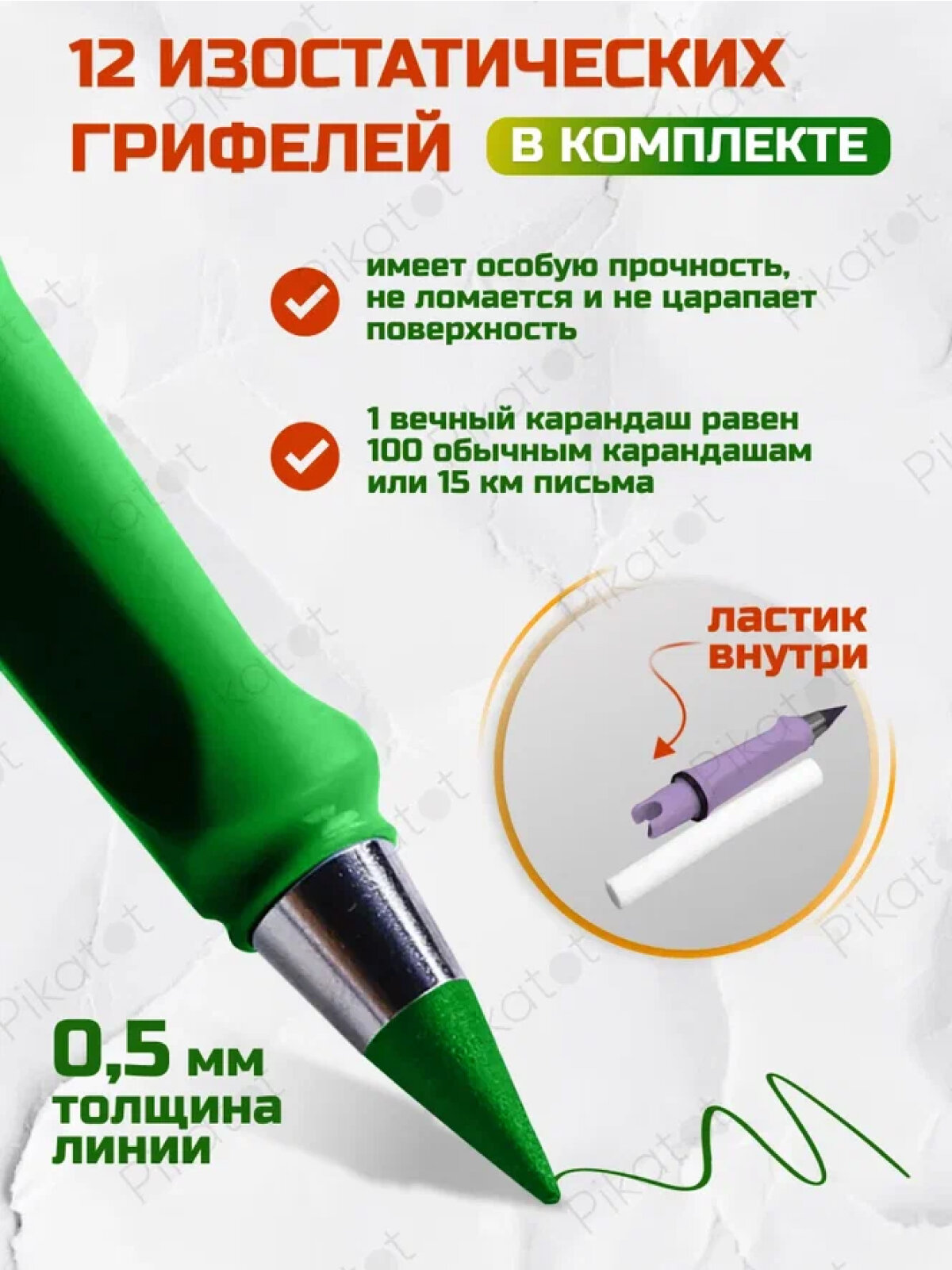 Вечные карандаши цветные с насадками, набор 12 шт информация: