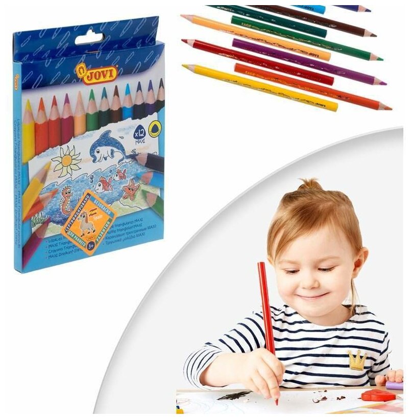 10 цен на Карандаши цветные JOVI "Maxi", 12цв., трехгран., утолщенные, заточенные