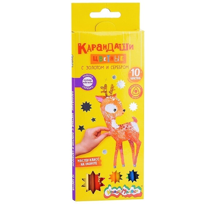 10 цен на Набор цветных карандашей Каляка-Маляка 10 цветов, трехгранные, золото и серебро (КТЗСКМ10)