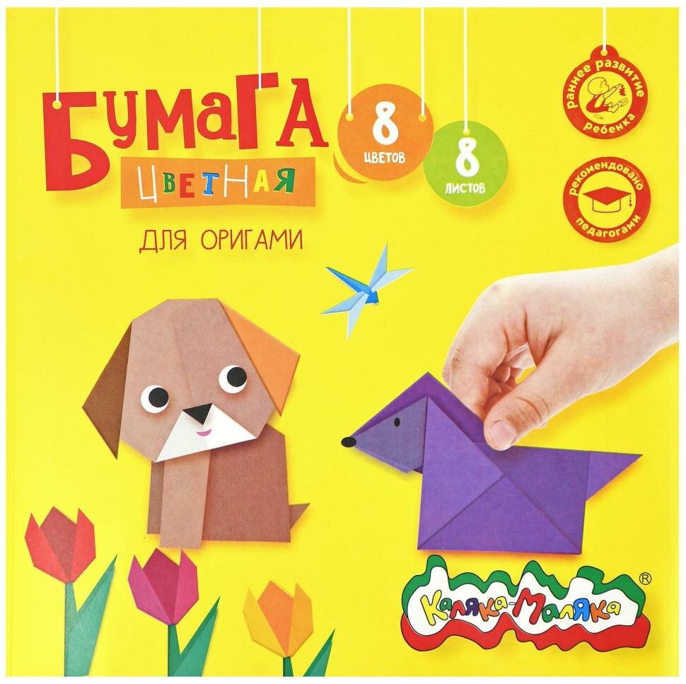10 цен на Бумага цветная для оригами 2-сторонняя офсетная Каляка-Маляка, 195х195мм, 8 цветов 8 листов