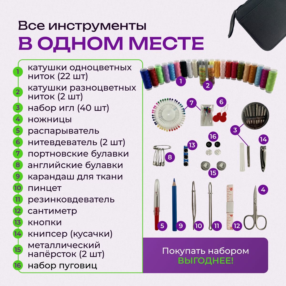 10 цен на Швейный набор, набор для шитья дорожный, 137 предметов, для дома и дачи