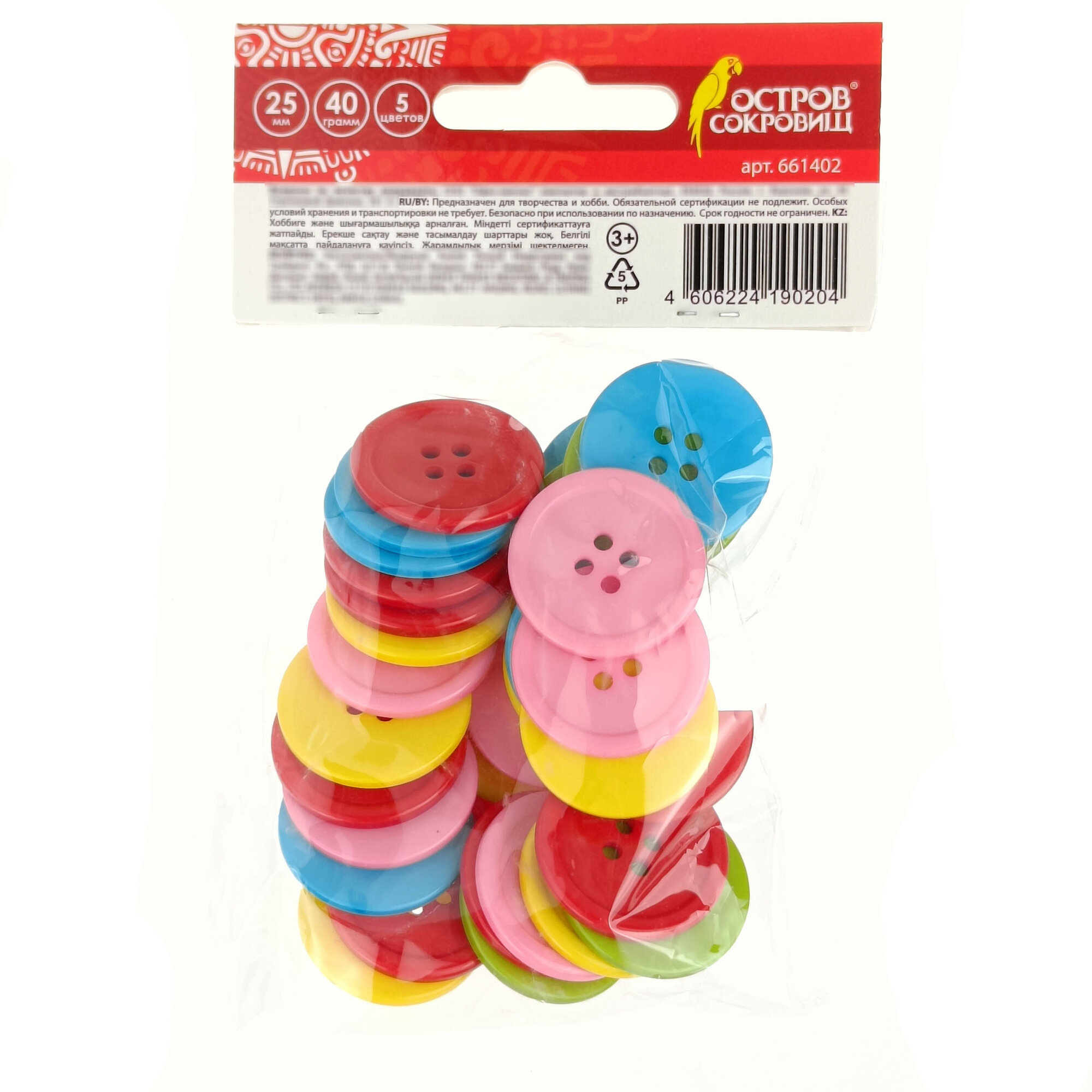 Пуговицы декоративные Остров сокровищ Круглые, пластик, 25 мм, 5 цветов, 40 г (661402) информация: