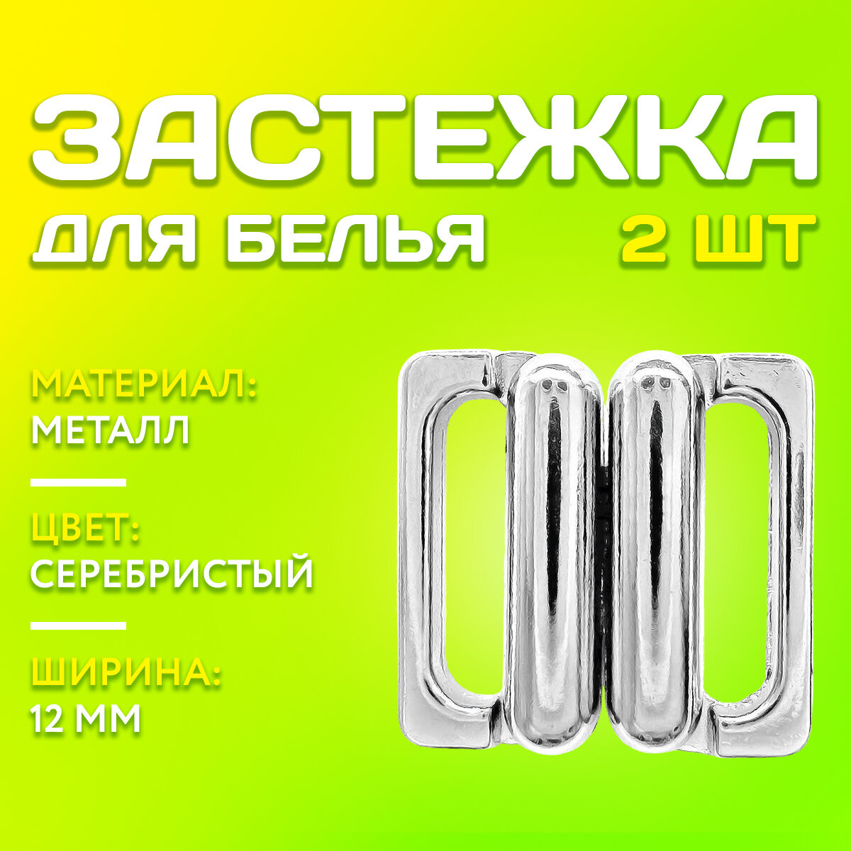 Пряжка-застежка для купальника или белья, 2 шт, 12 мм, металл, цвет серебристый информация:
