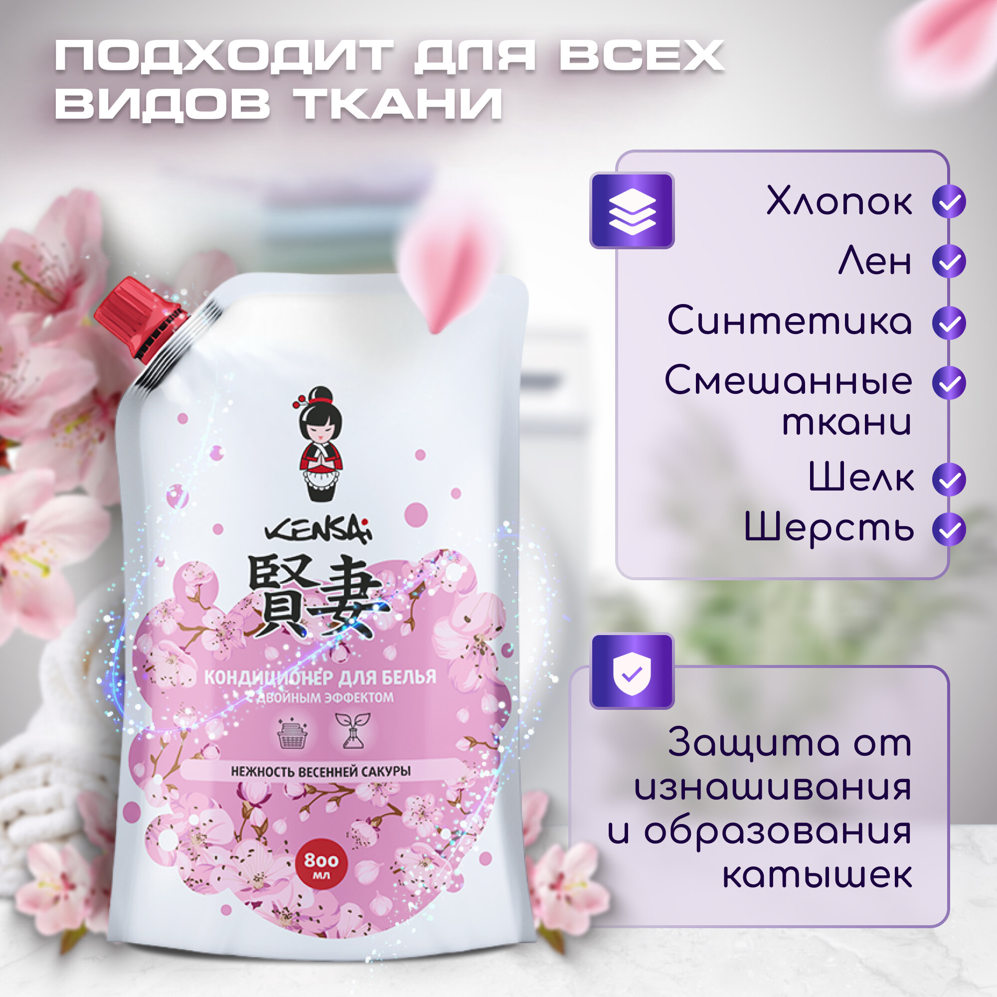 Кондиционер для белья Kensai с двойным эффектом "Нежность весенней сакуры", сменный блок 800 мл информация: