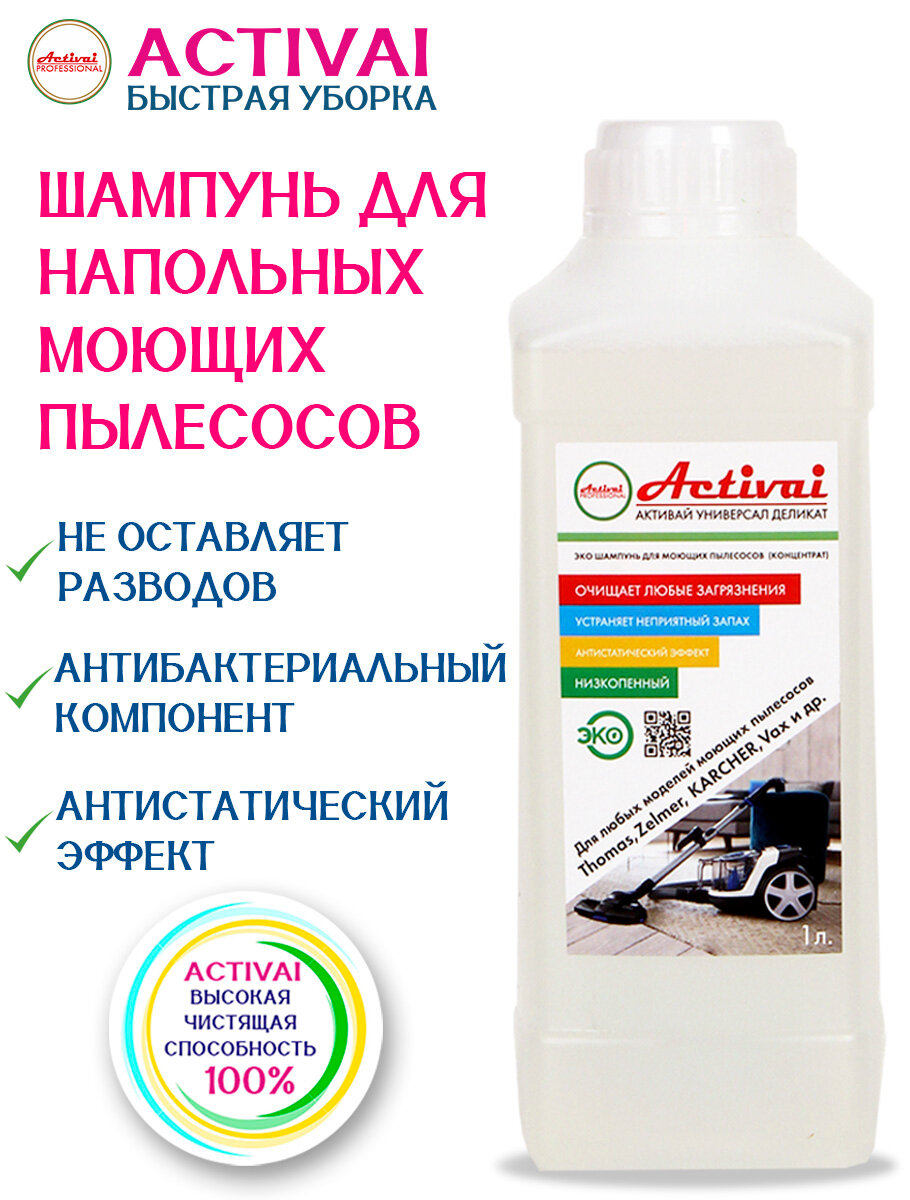 Средство для моющего пылесоса Thomas, Karcher, Bosh, Zelmer, средство для мытья пола, средство для чистки ковров, пятновыводитель, средство для чистки мягкой мебели, шампунь для моющих пылесосов, бытовая химия, 1 литр. Быстрая уборка Activai PROFESSIONAL информация: