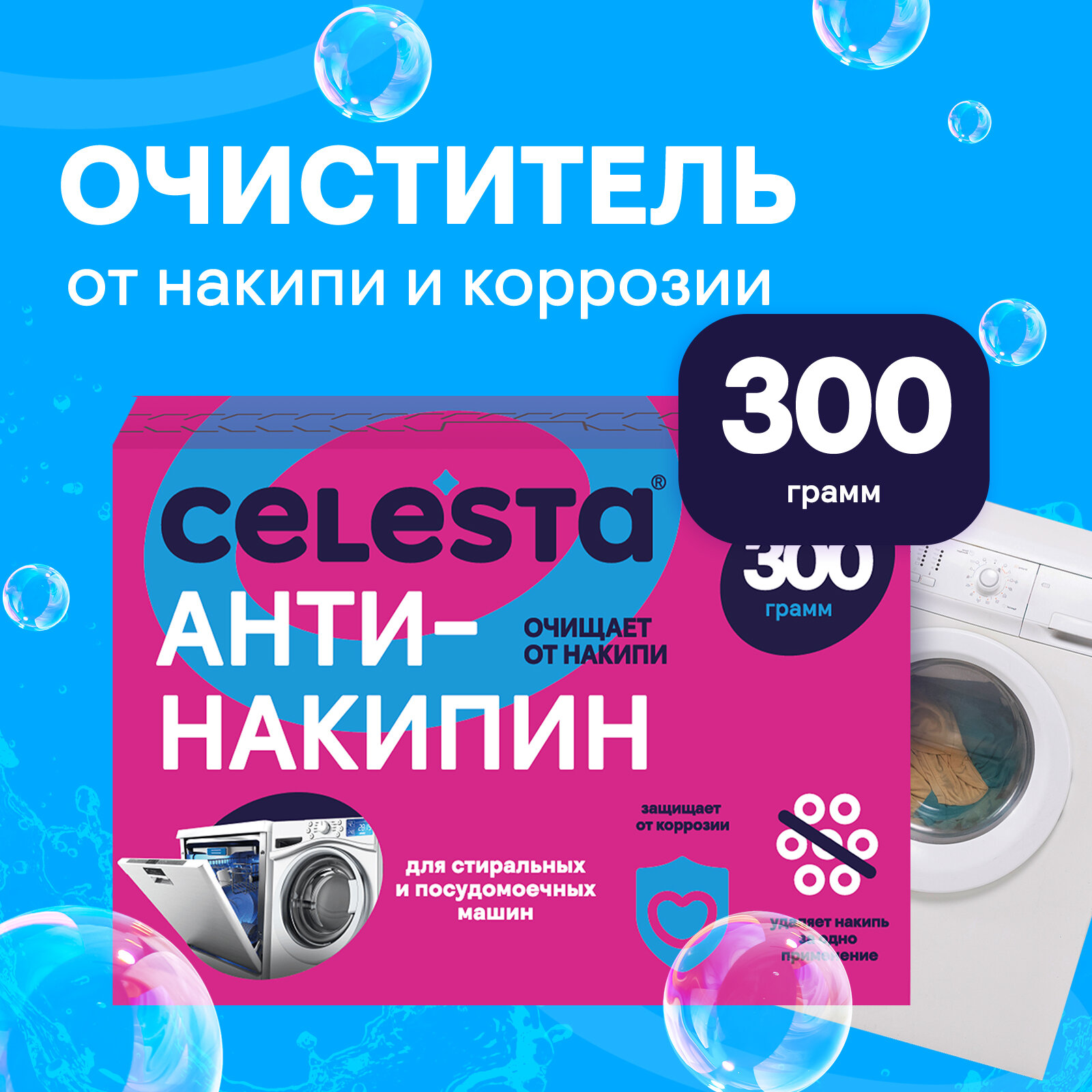 10 цен на Очиститель для стиральных машин Celesta Express, против накипи и для удаления ржавчины, 300г