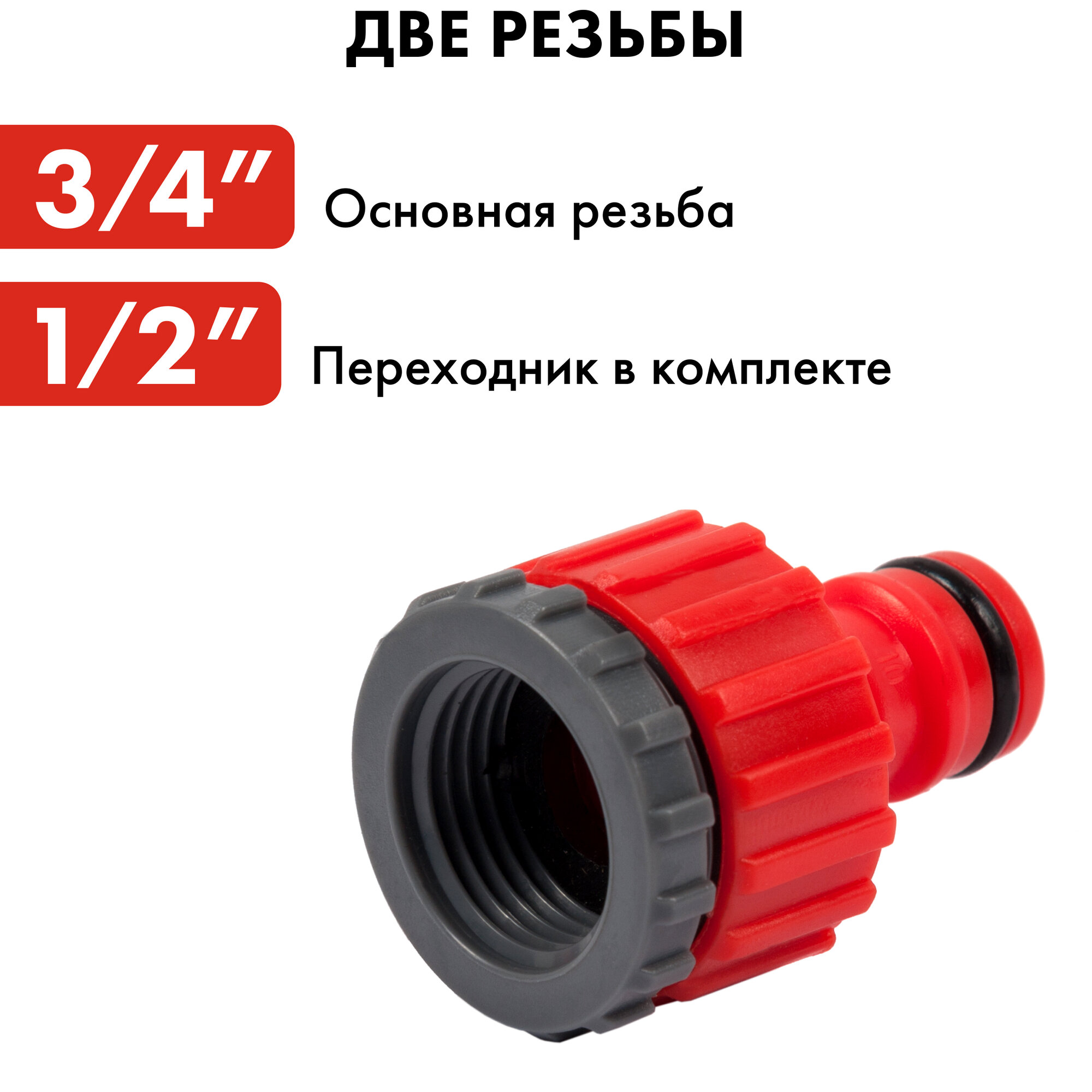 Соединитель/штуцер для шланга QUATTRO ELEMENTI внутр. резьба 1/2" и 3/4" - БРС папа, пластик информация: