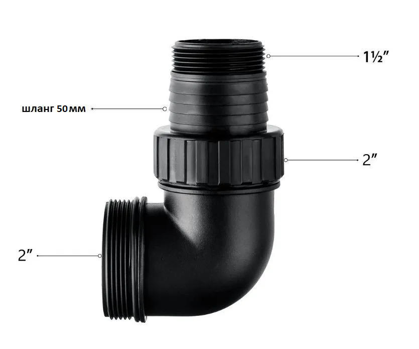 Патрубок для насоса дренажного 2" M50 (2 дюйма) / отвод / соединитель для дренажного насоса информация: