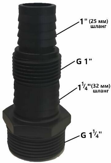 Патрубок прямой для насоса дренажного 1 1/4" M32 (дюйм c четвертью), выходной штуцер насоса информация: