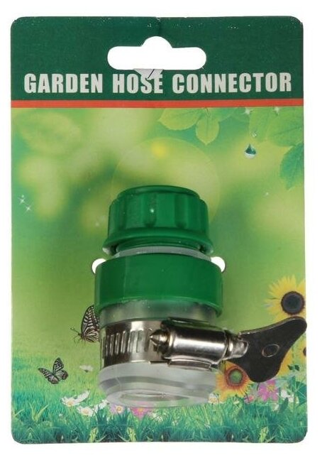 Коннектор, 3/4" (19 мм), с креплением на кран 3/4" (19 мм), с хомутом, пластик, резина