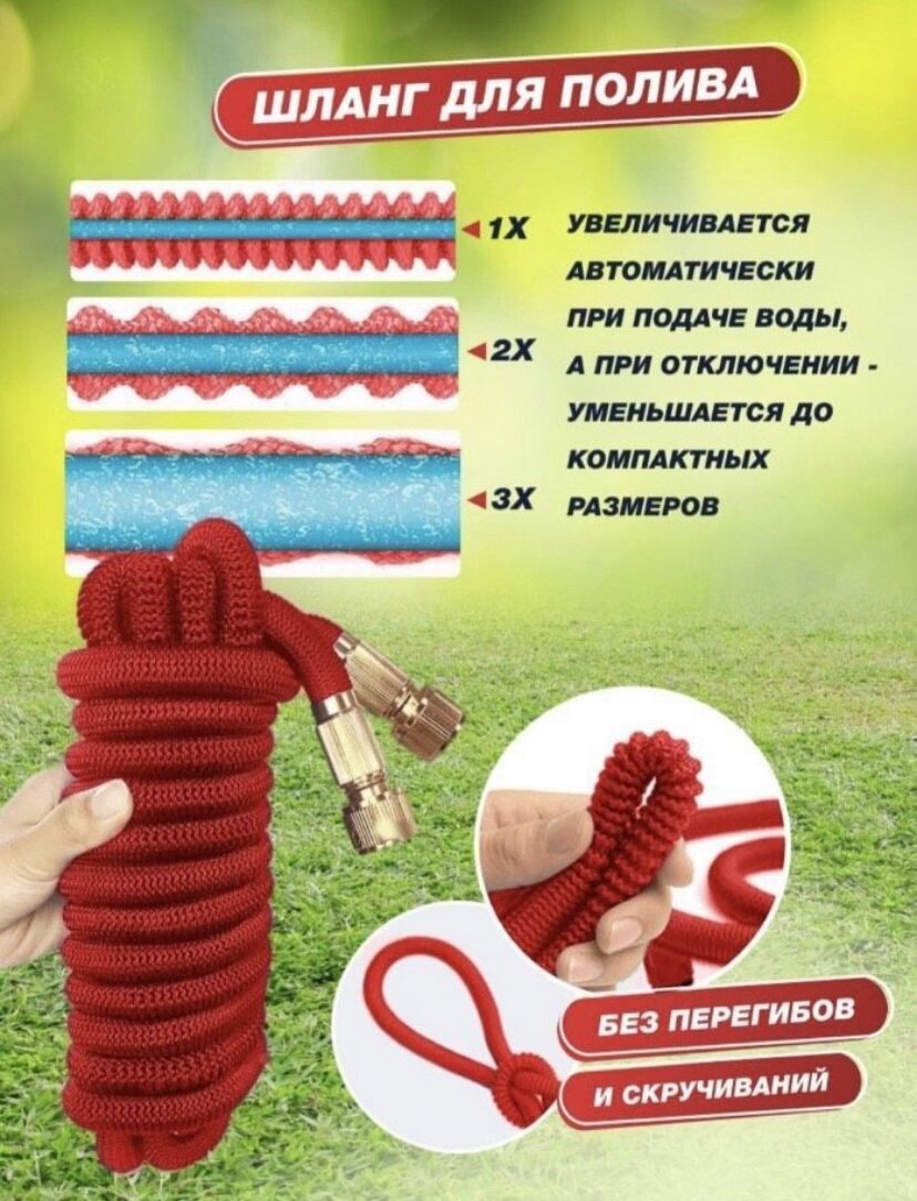 Отзывы на Удлиняющийся поливочный шланг 100м, 5 слоев, насадка в комплекте