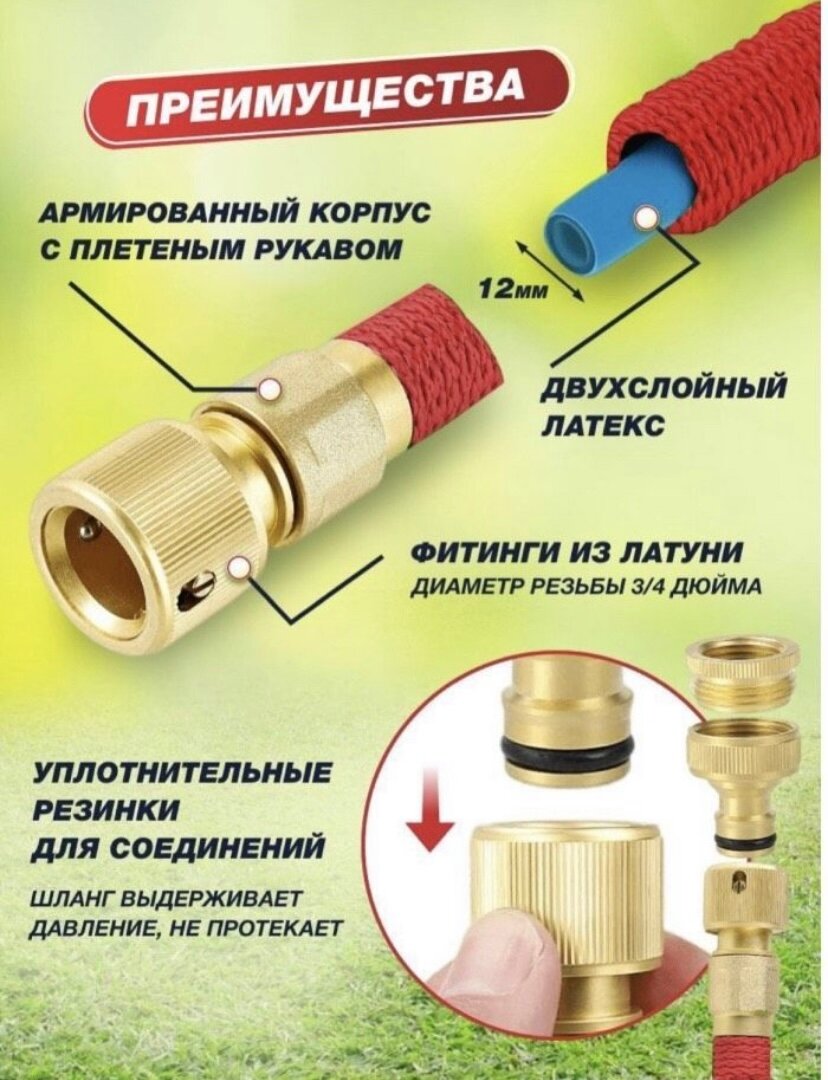 10 цен на Удлиняющийся поливочный шланг 100м, 5 слоев, насадка в комплекте