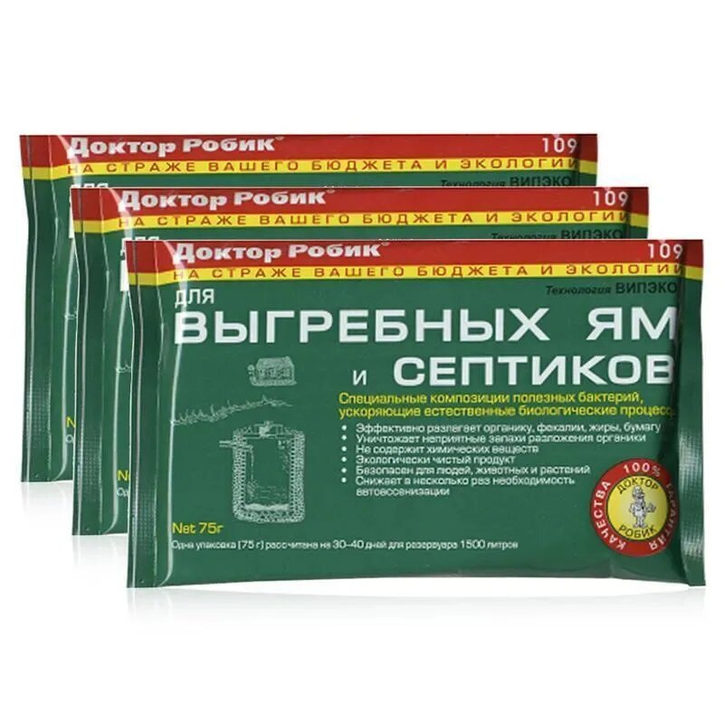 Доктор Робик Бактерии для септиков, выгребных ям и дачных туалетов 3 шт., 225 гр. (109) информация: