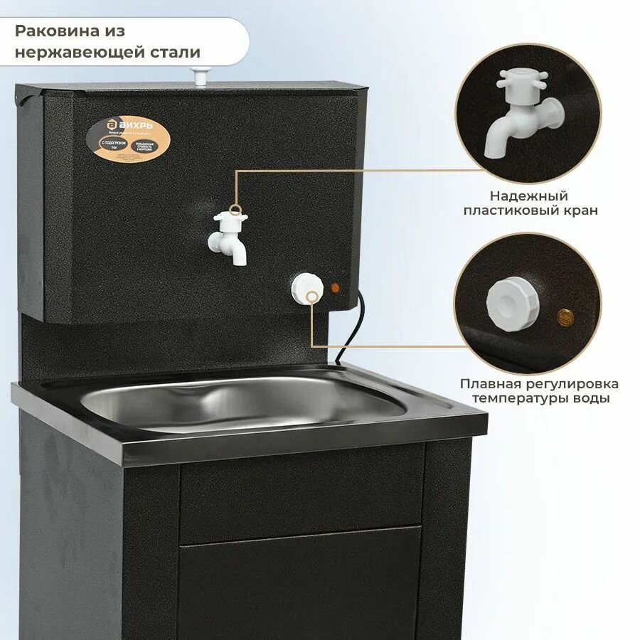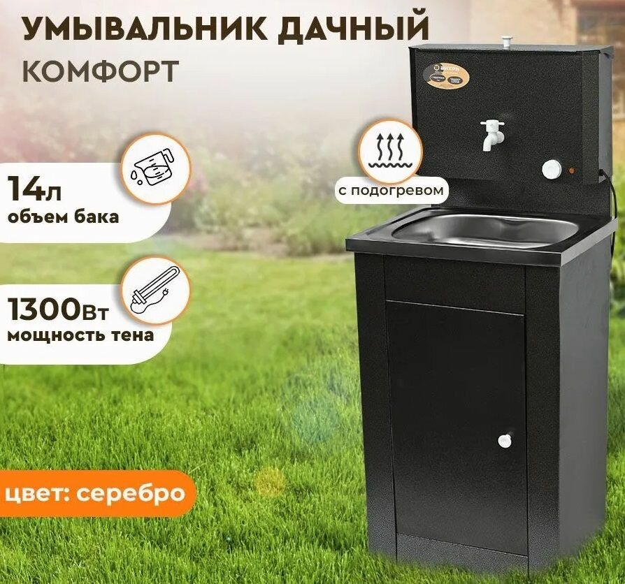 Дачный умывальник с подогревом, нержавеющая мойка, цвет серебро126 х50х 30 см информация: