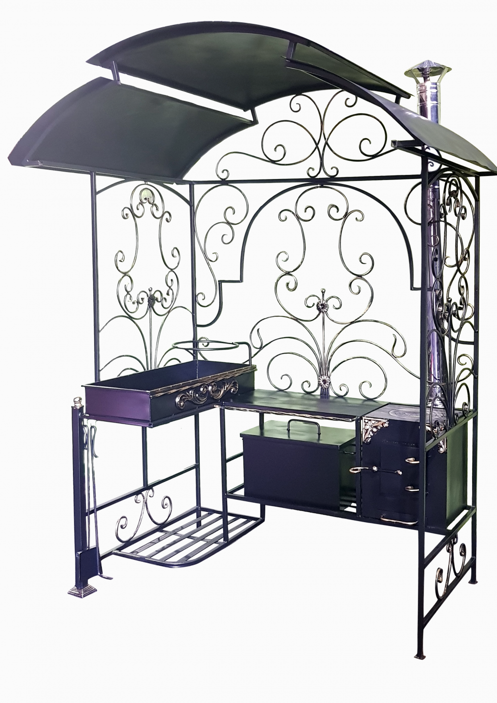 | В комплекте | колосник / 2 мм / Каркас с крышей / Коптильня из нержавейки / двухкамерная печь под казан / дымоход печи / жаровня под шампуры / чугунная плита с кольцами |
