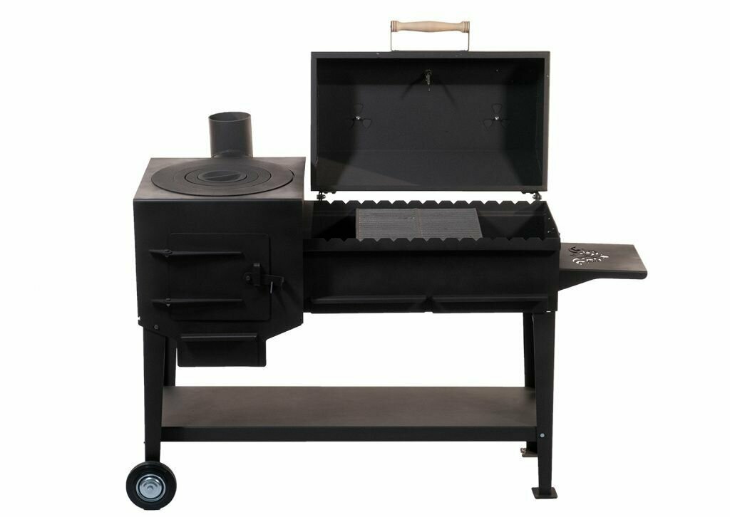 | Особенности | Боковой столикДровницаНожкиРегулировка подачи воздухаТермометр |