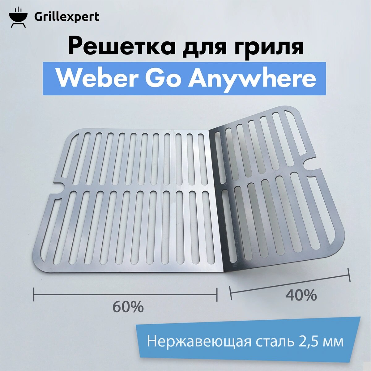 Отзывы на Решетка 40,5смx25,4cм с откидной створкой, толщиной 2,5 мм для гриля Weber Go Anywhere