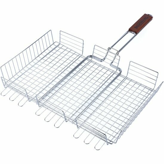 Решетка гриль LESNIKOVA, для птицы, металл, деревянная рукоять, 35x26 см