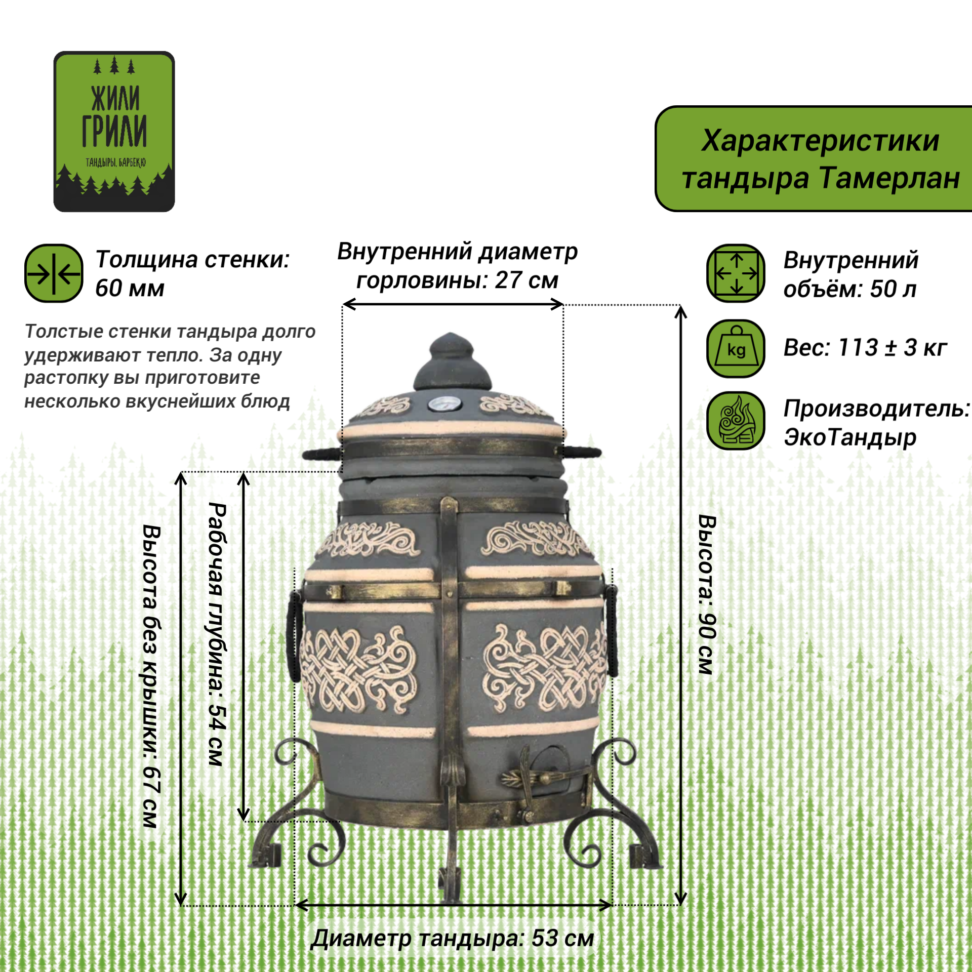 Тандыр ЭкоТандыр Тамерлан, цвет: графит / чехол, сборник рецептов в подарок информация: