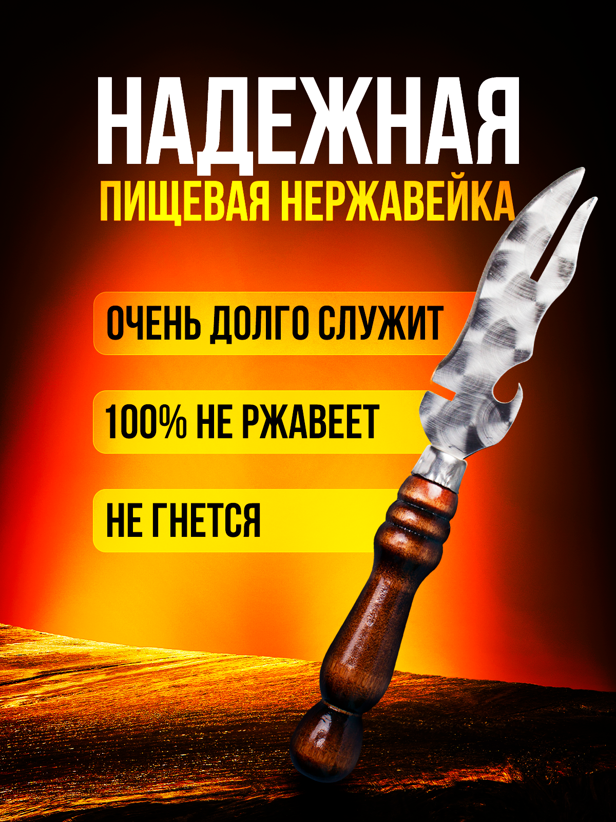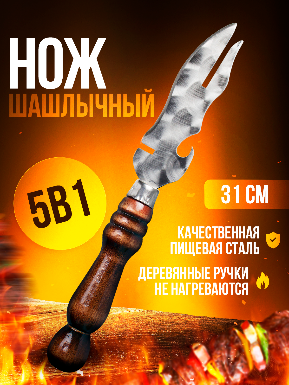 Отзывы на Нож для снятия шашлыка, вилка барбекю, открывашка, очиститель шампуров "Лучезар" 32 см 6 в 1
