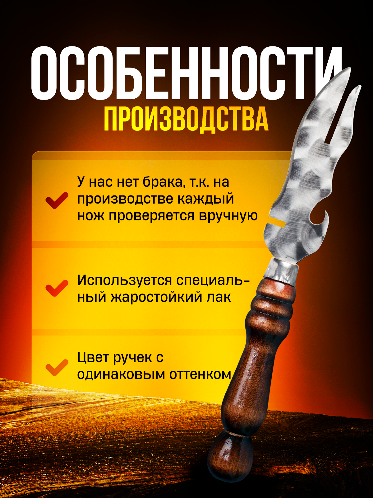 Нож для снятия шашлыка, вилка барбекю, открывашка, очиститель шампуров "Лучезар" 32 см 6 в 1 информация: