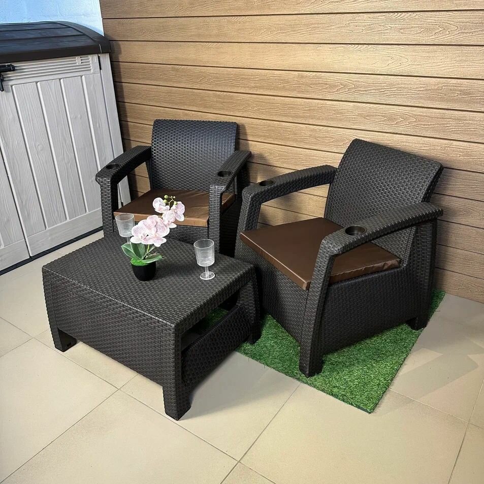 Отзывы на Комплект мебели балконный под ротанг Уикенд Коричневый, подушки шоколад