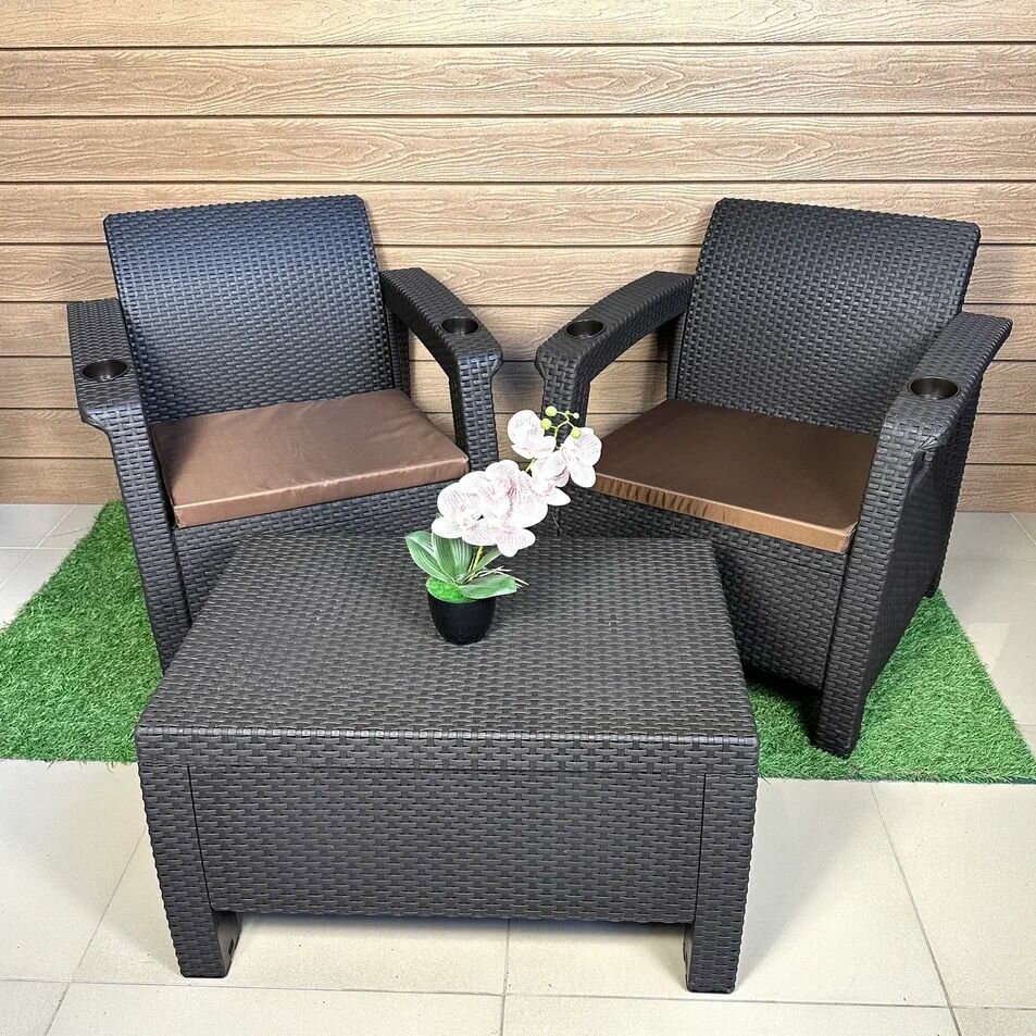 Комплект мебели балконный под ротанг Уикенд Коричневый, подушки шоколад информация: