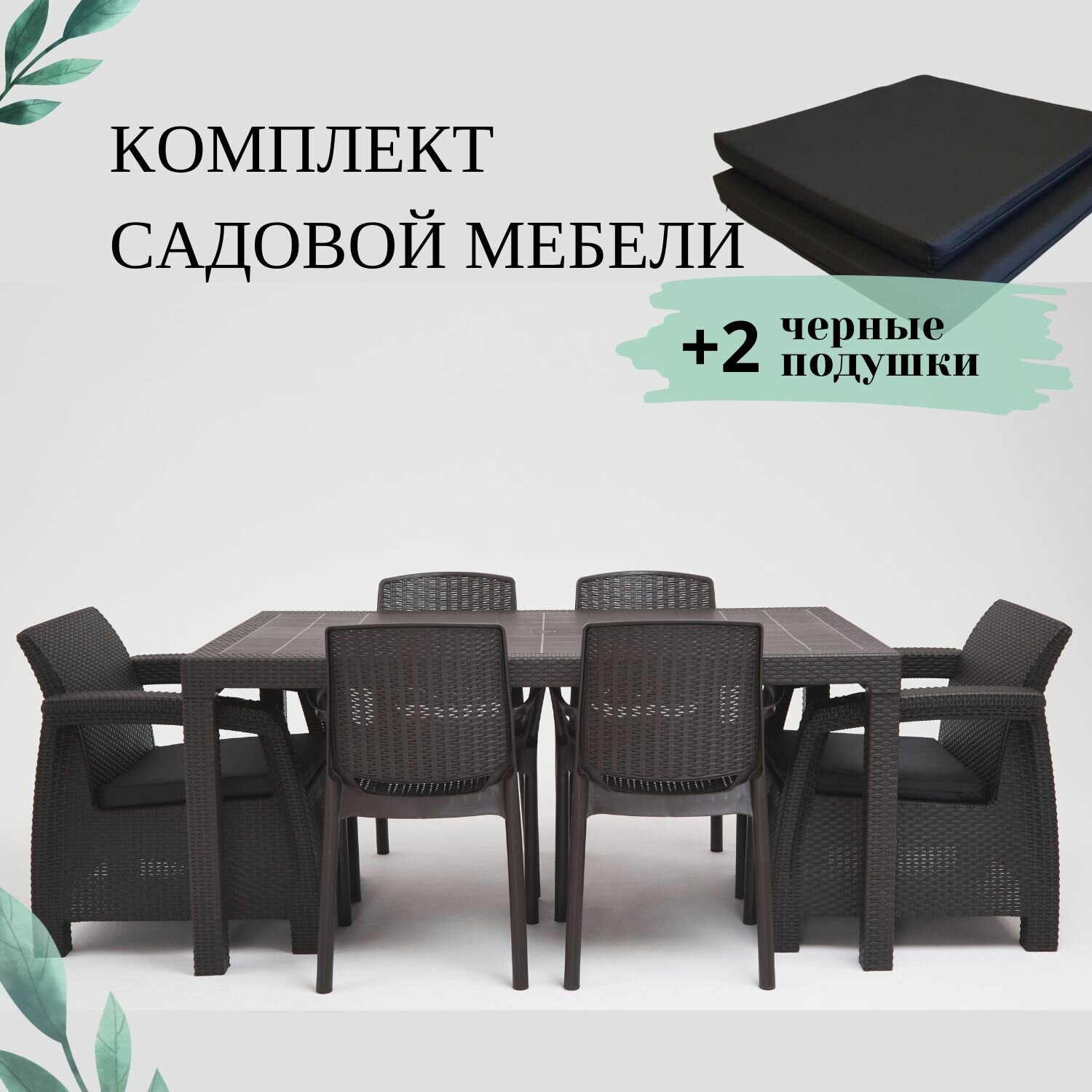 Комплект садовой мебели из ротанга Set 5+Bt+3ch, черные подушки