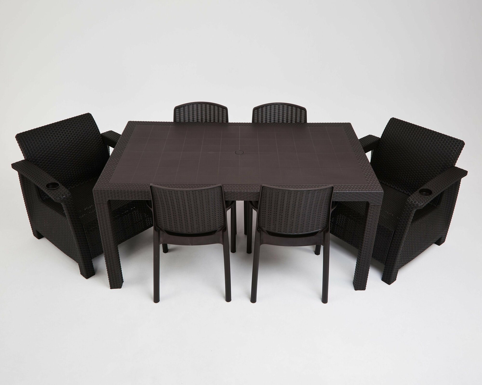 Комплект садовой мебели из ротанга Set 5+2+1+Bt, коричневые подушки