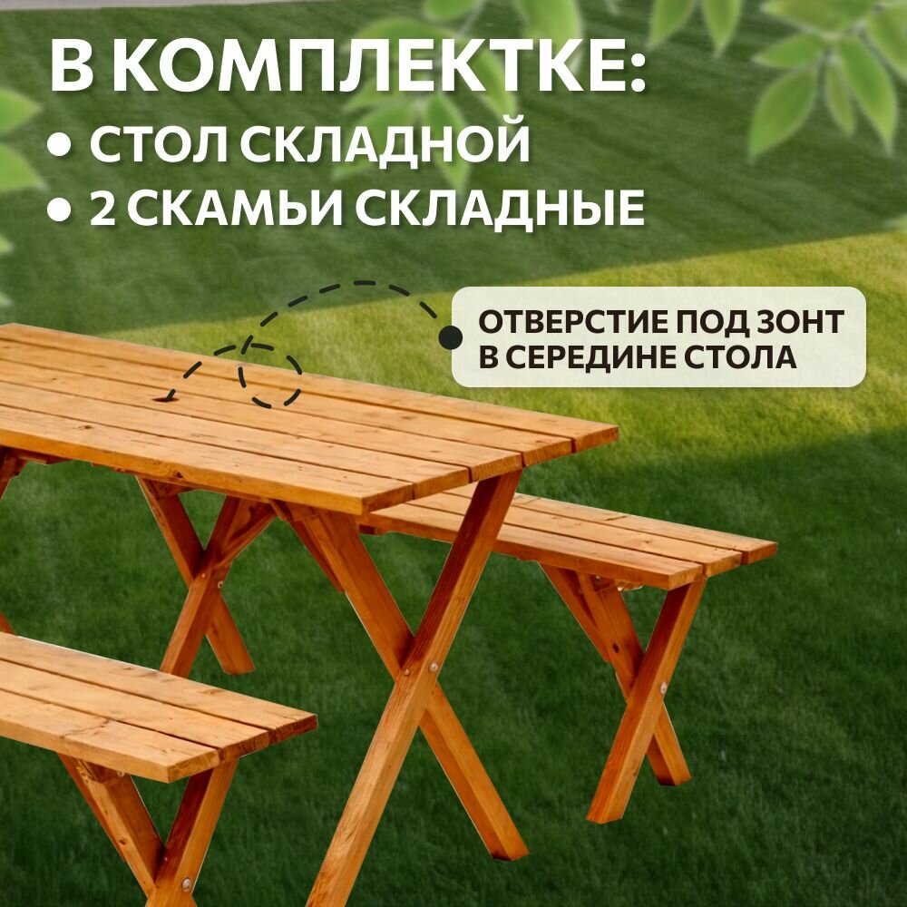 Комплект садовой мебели из дерева / Набор обеденный садовый с двумя скамейками и столом / Обеденная мебель для дачи, для улицы, в беседку информация: