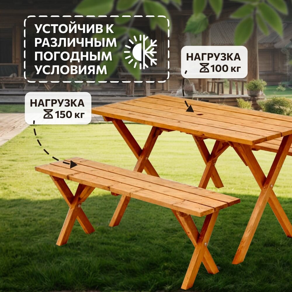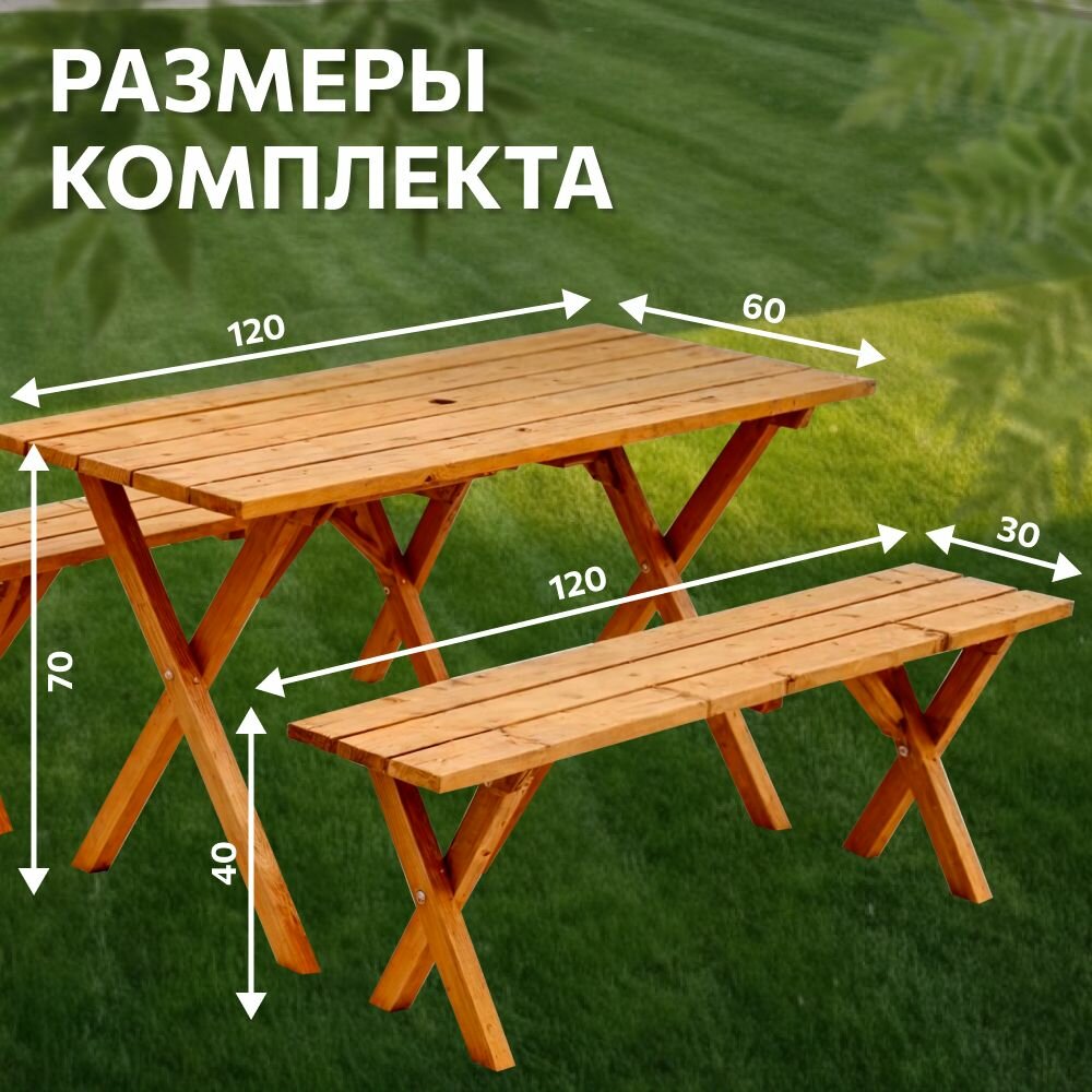 | Дополнительная информация | Стол 120*60*70 см, Скамья 120*30*40 см. |