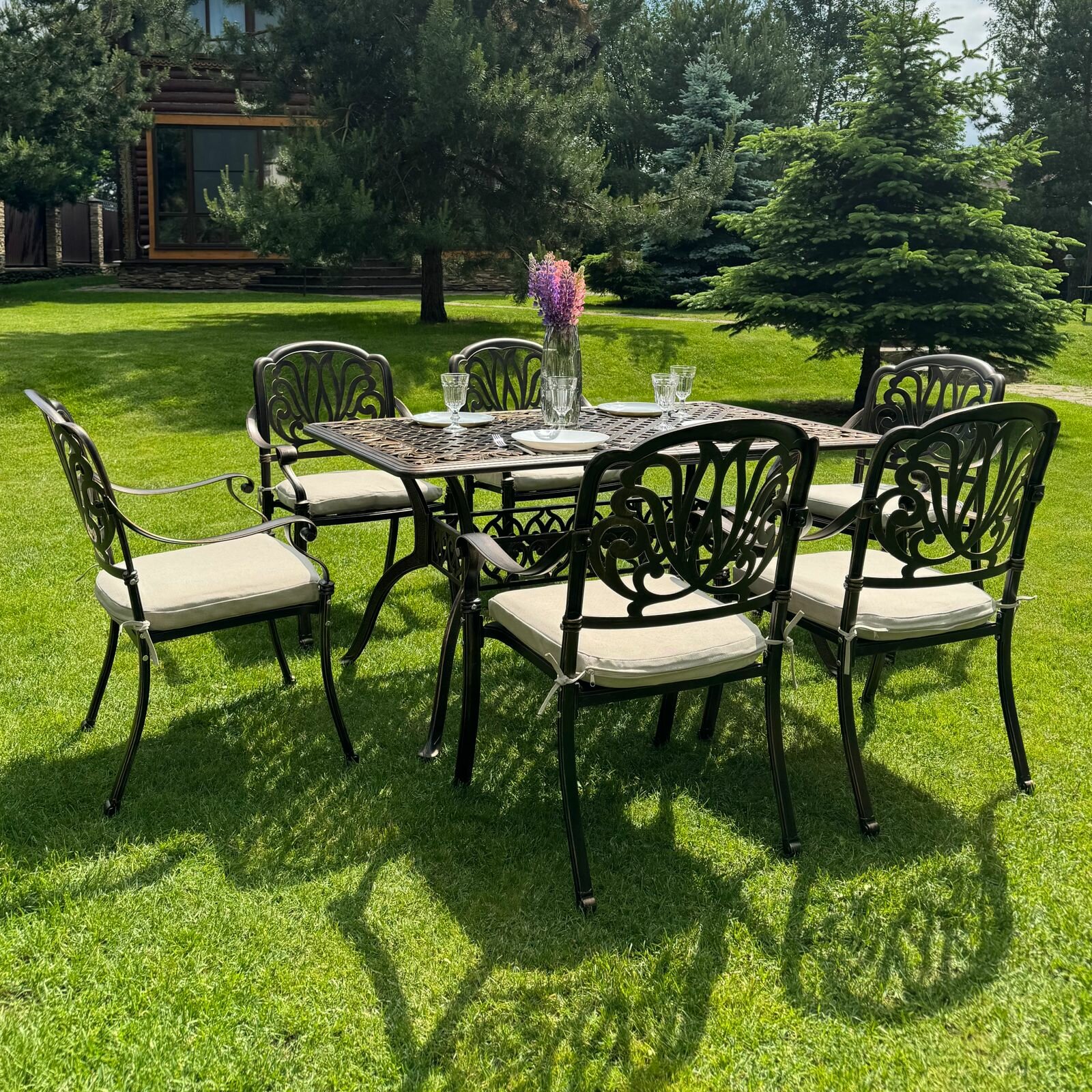 10 цен на Обеденный комплект из литого алюминия WILHELM на 6 персон с прямоугольным столом