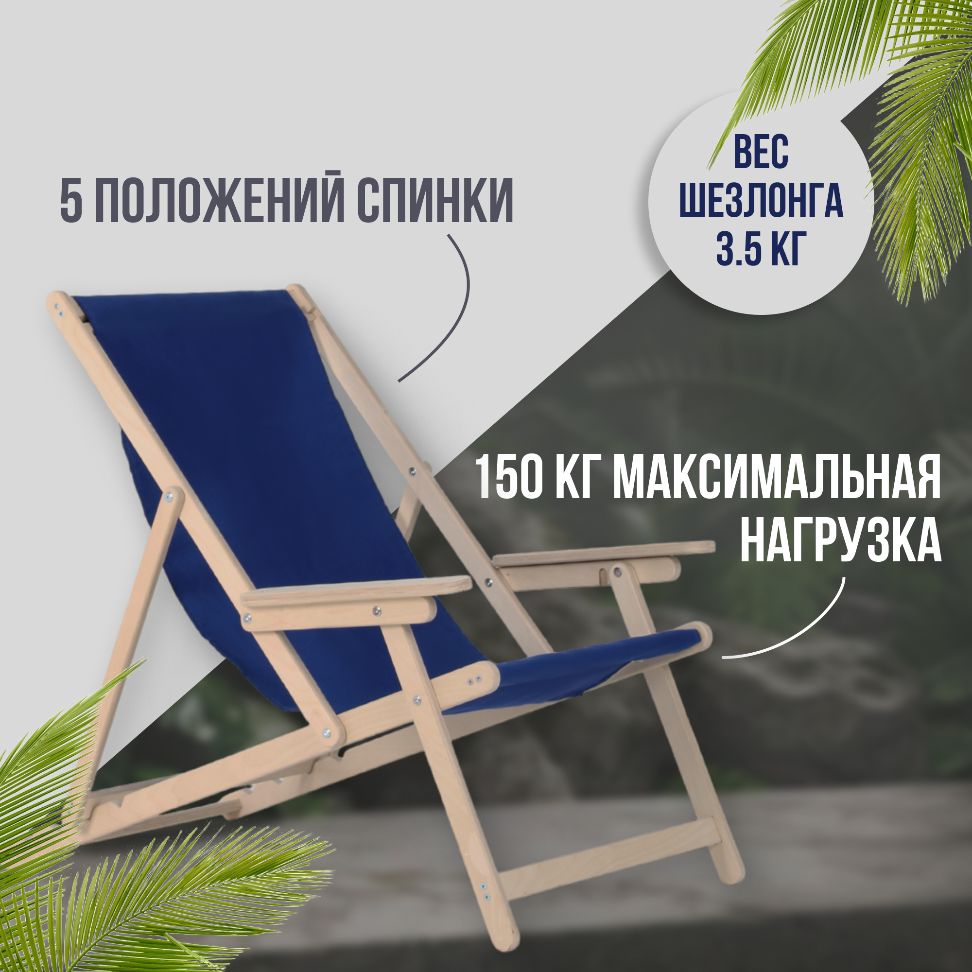 Кресло-шезлонг "Элби" с подлокотниками шлифованный с темно-синей тканью для дома и для дачи, комплект 2 шт 6 000 ₽