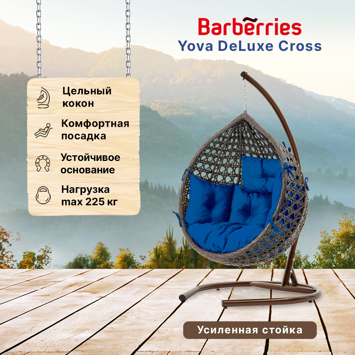 Отзывы на Подвесное кресло кокон садовое Barberries Yova DeLuxe Cross. Стойка венге до 225 кг, подушка комфорт синяя