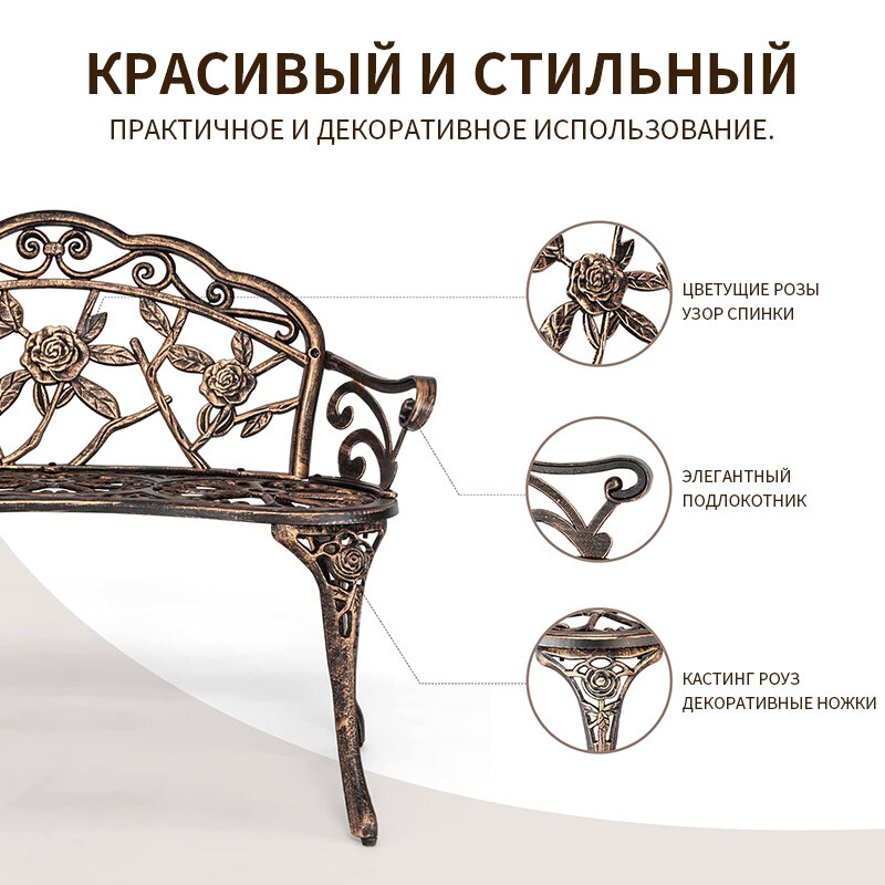 10 цен на Скамейка садовая,лавка дачная, скамья для дома, для сада, узор из роз,бронзового цвета