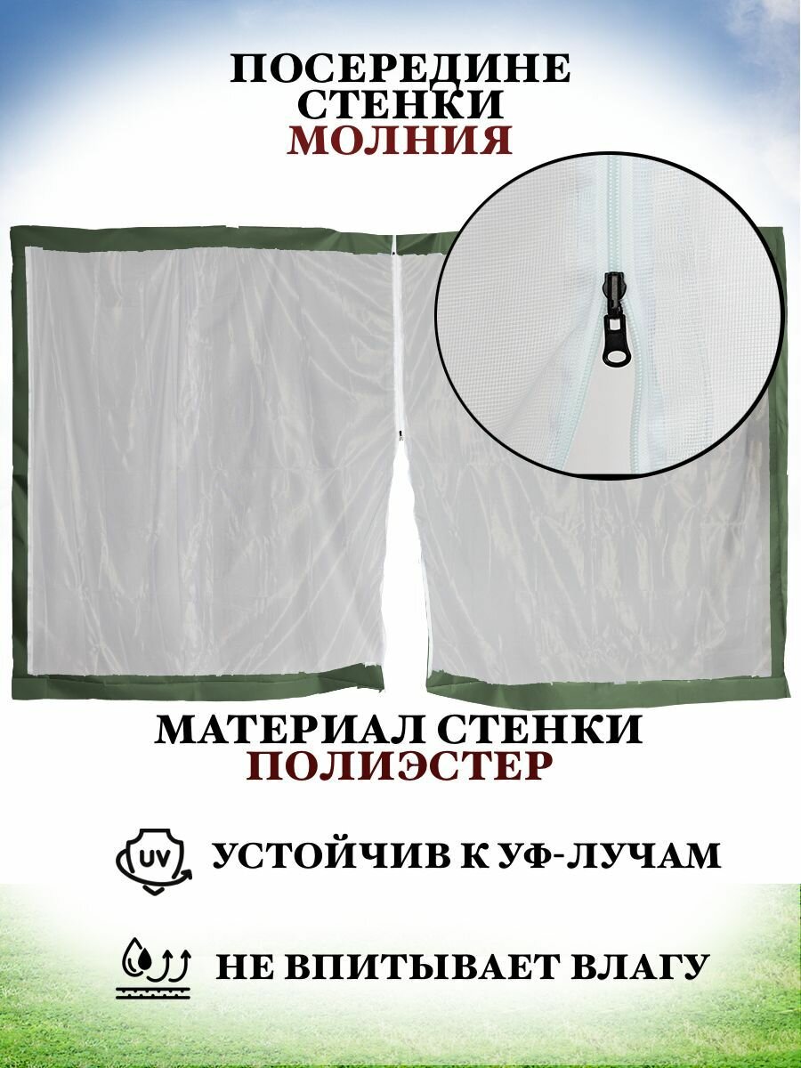 Стенка для садового тента или шатра с москитной сеткой с молнией, 1,95х2,95м полиэстер, зеленая информация: