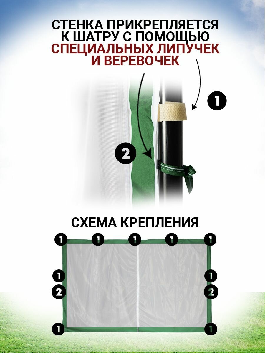 Стенка для садового тента или шатра с москитной сеткой с молнией, 1,95х2,95м полиэстер, травянной информация: