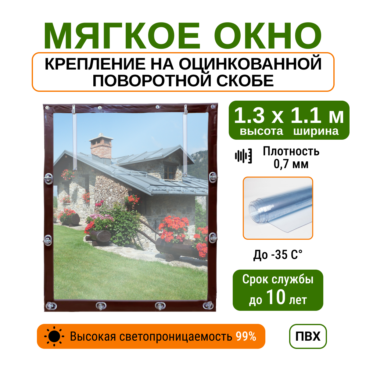 Мягкое окно 1.3х1.1м для беседки, веранды и террасы с металлическими креплениями, коричневое информация: